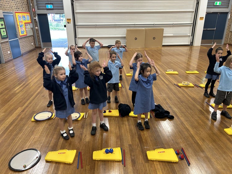 Taught by a musically trained teacher, our Music Program engages students in creative learning through instruments and singing.